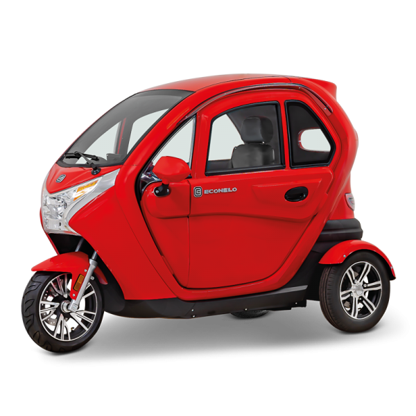 ECONELO's electric cabin scooters are a rainproof alternative to the open tricycle scooters.
